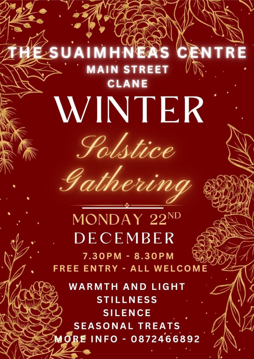 All Are Welcome to *A Winter Solstice Gathering*. 7.30pm , The Suaimhneas Centre, Main Street, Clane