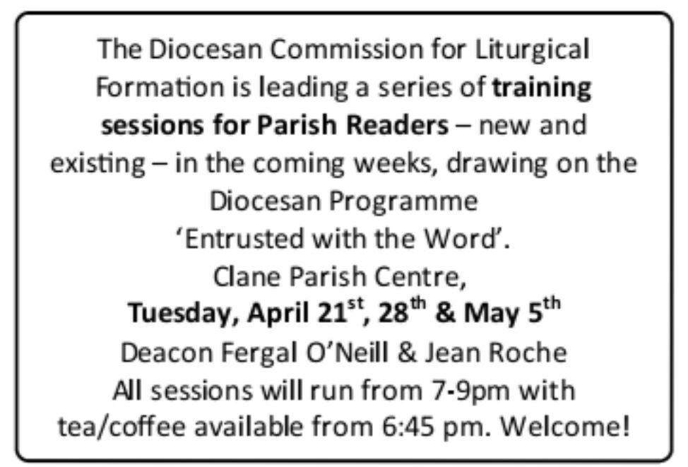 Tel: 045 861 393 | Email: claneparish@eircom.net